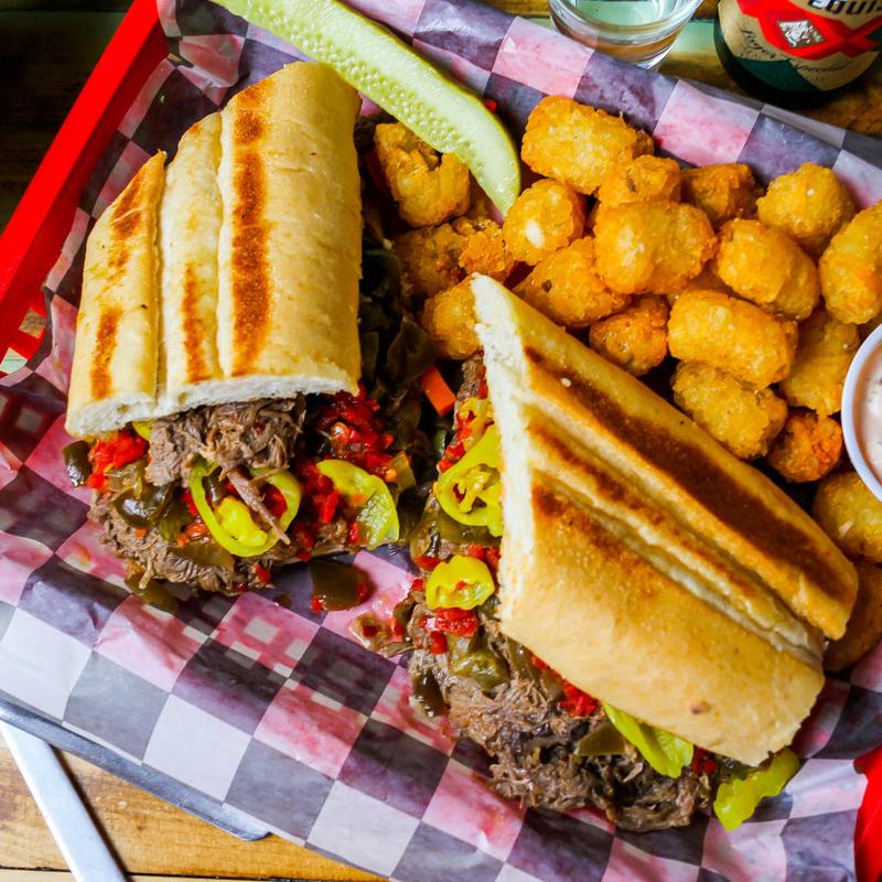 Slow Roasted (10hrs) Chuck Roast, Smothered in Giardiniera, Au Jus + Provolone on Deli Loaf