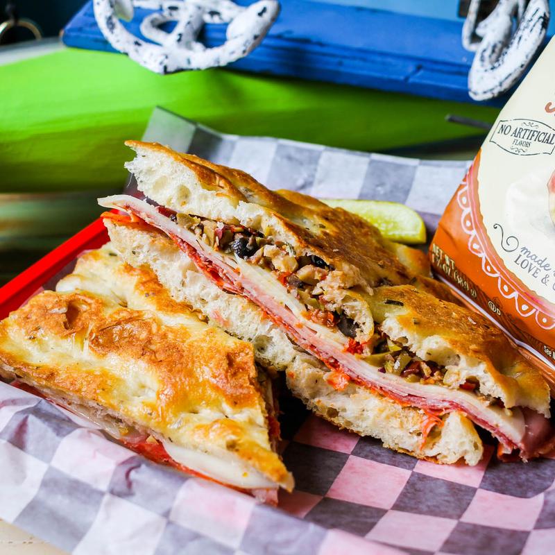 Capicola, Sopressata, Mortadella, Provolone, Mozzarella, Served w/ Olive Topenade on Savory Focaccia Bread