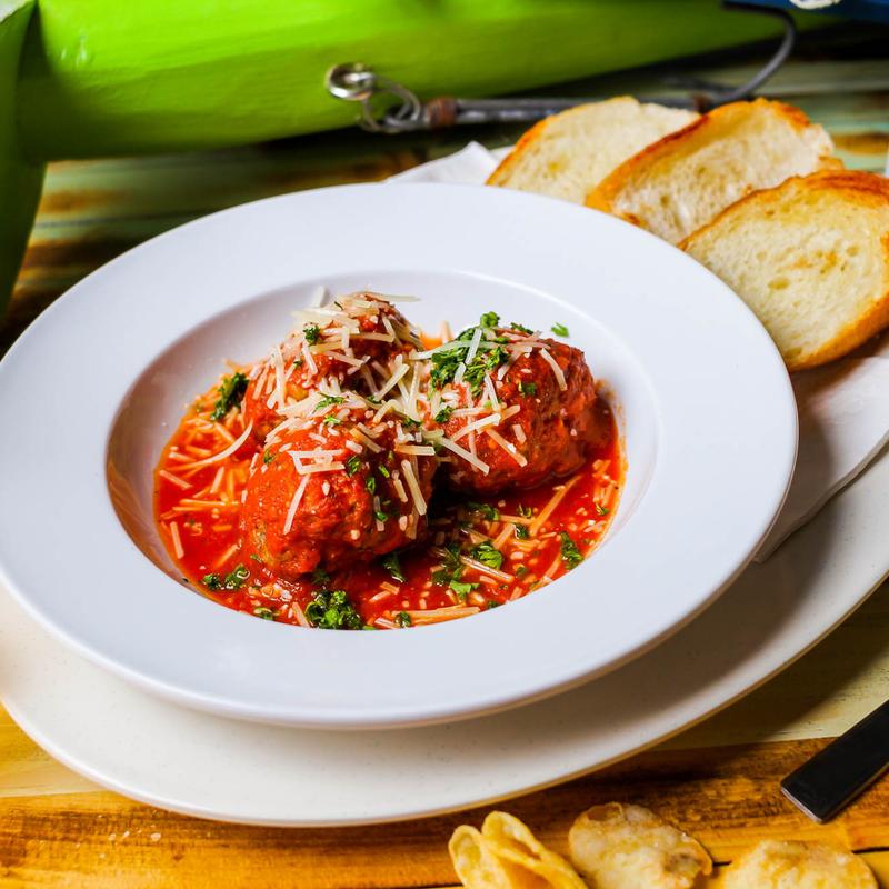 3 All Ground Lamb Filled w/ Middle Eastern Flavors. Rolled/Roasted Marinara, Parmesan + Feta Cheeses